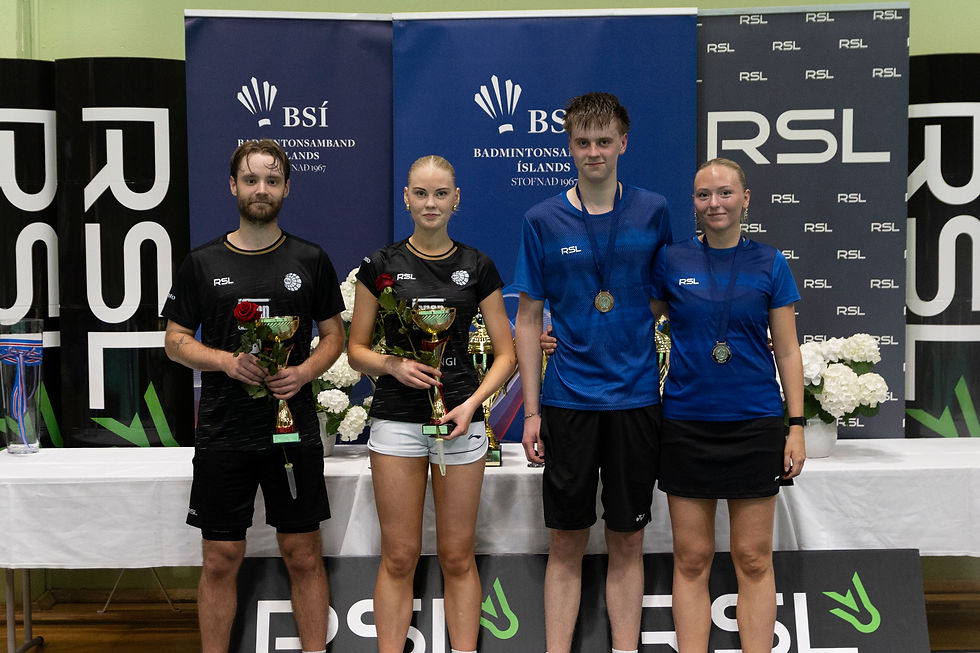 Í tvenndarleik urðu Sigurður Eðvarð Ólafsson og Katla Sól Arnarsdóttir BH Íslandsmeistarar og í öðru sæti urðu Rúnar Gauti Kristjánsson og Natalía Ósk Óðinsdóttir BH.