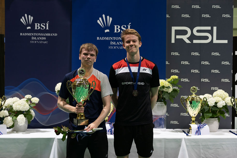 Í einliðaleik karla varð Kristófer Darri Finnsson TBR Íslandsmeistari og í öðru sæti varð Gústav Nilsson TBR.